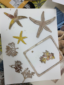 Here is a project I made with the chipboard pieces “starfish, coral and the frame from the butterflies” from Southern Ridge Trading Company.  You can get more information at #southernridgetradingcompany or https://cestmagnifiquekits.blogspot.com